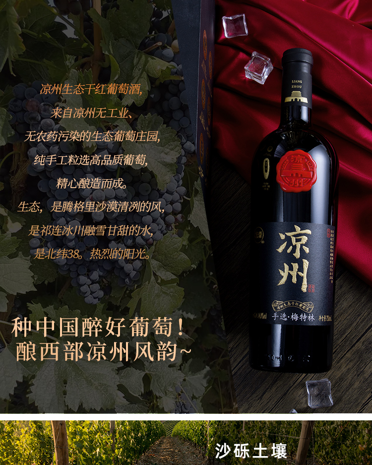 酒品名稱:涼州生態(tài)干紅葡萄酒 (漢韻)手選·梅特林