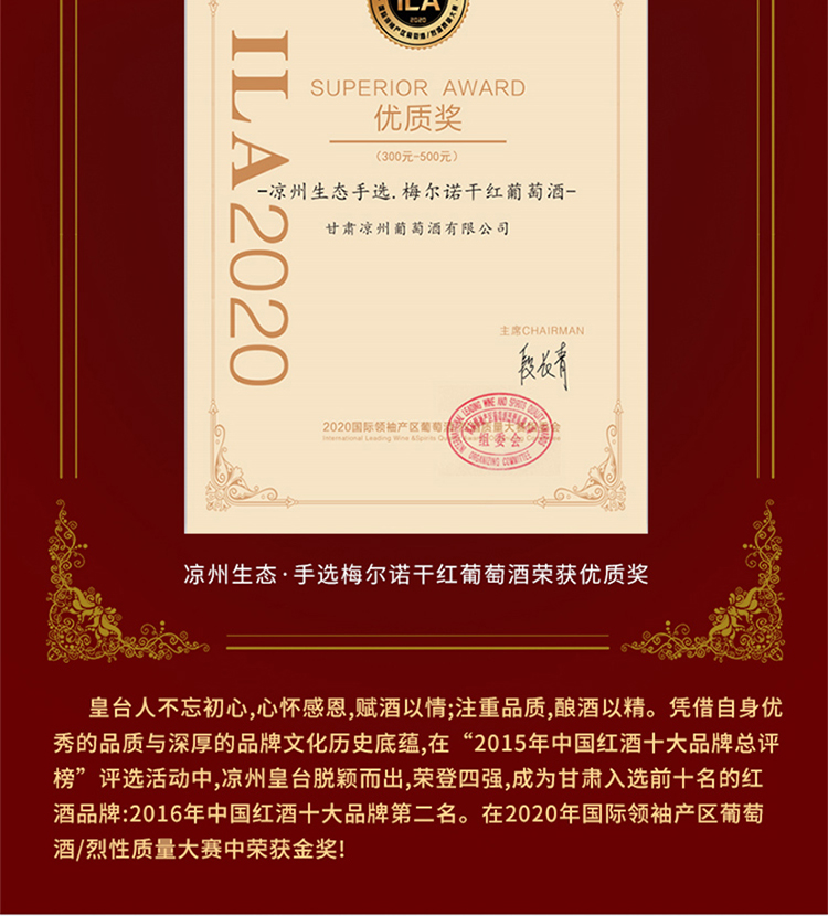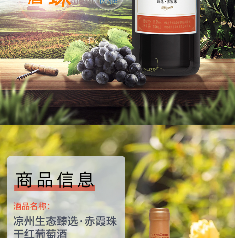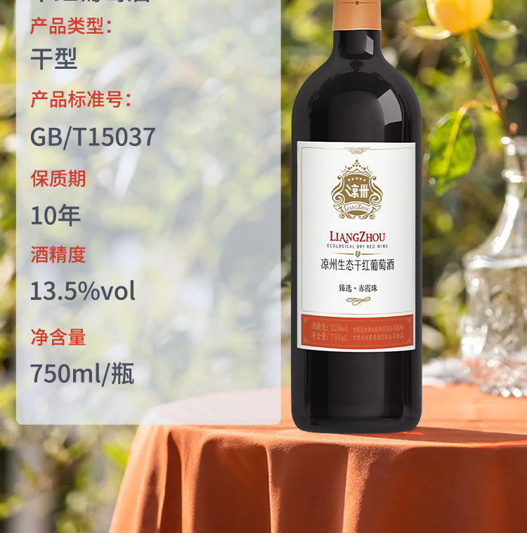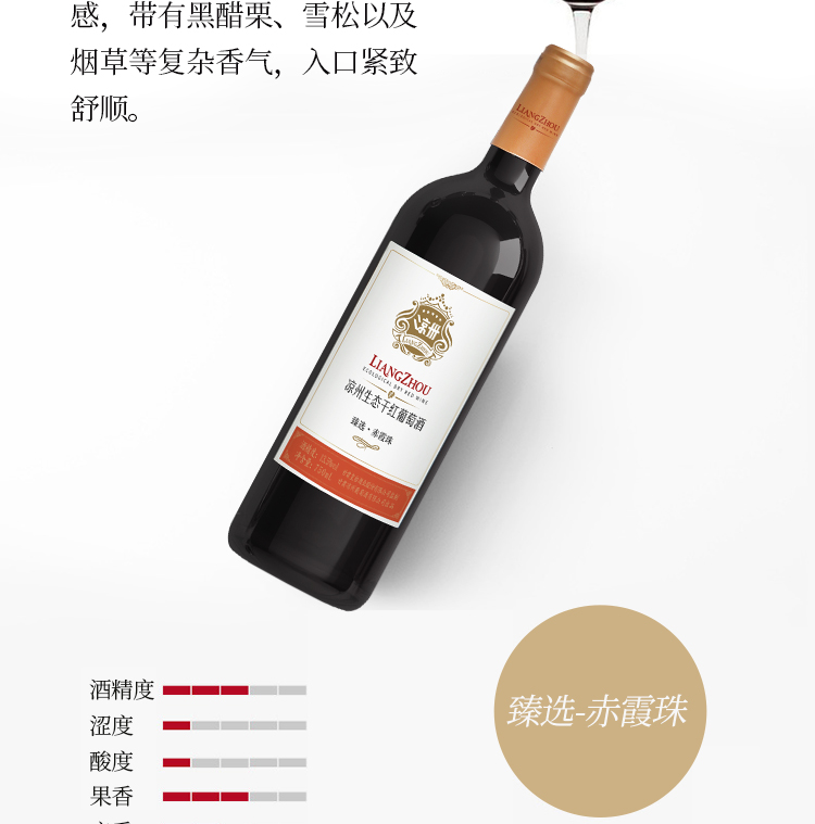 酒品名稱:涼州生態(tài)臻選·赤霞珠干紅葡萄酒