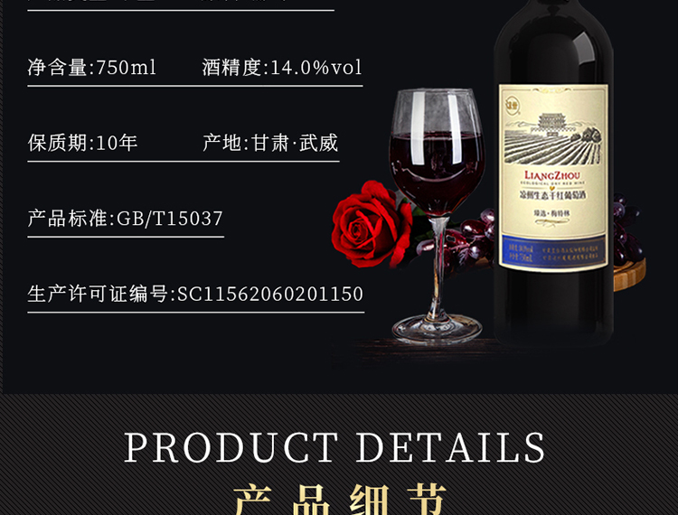 產(chǎn)品名稱:涼州生態(tài)臻選·梅特林干紅葡萄酒