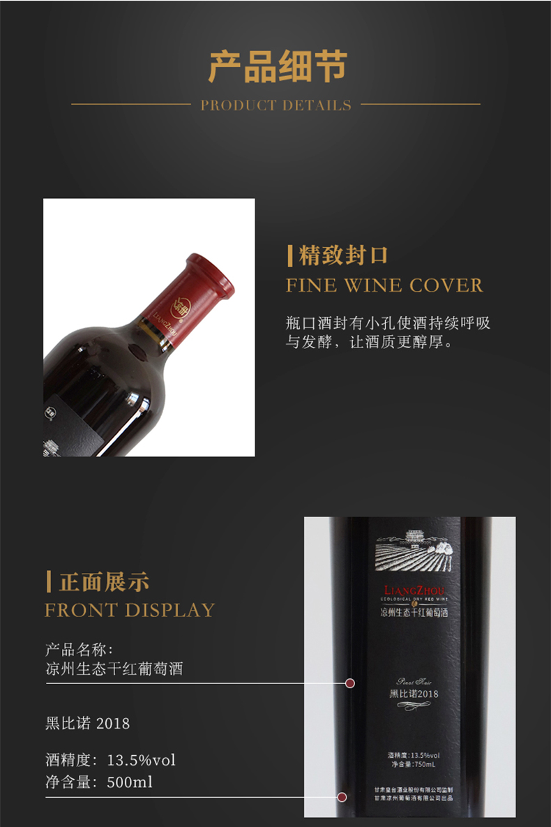 品名:涼州生態(tài)干紅葡萄酒2018黑比諾