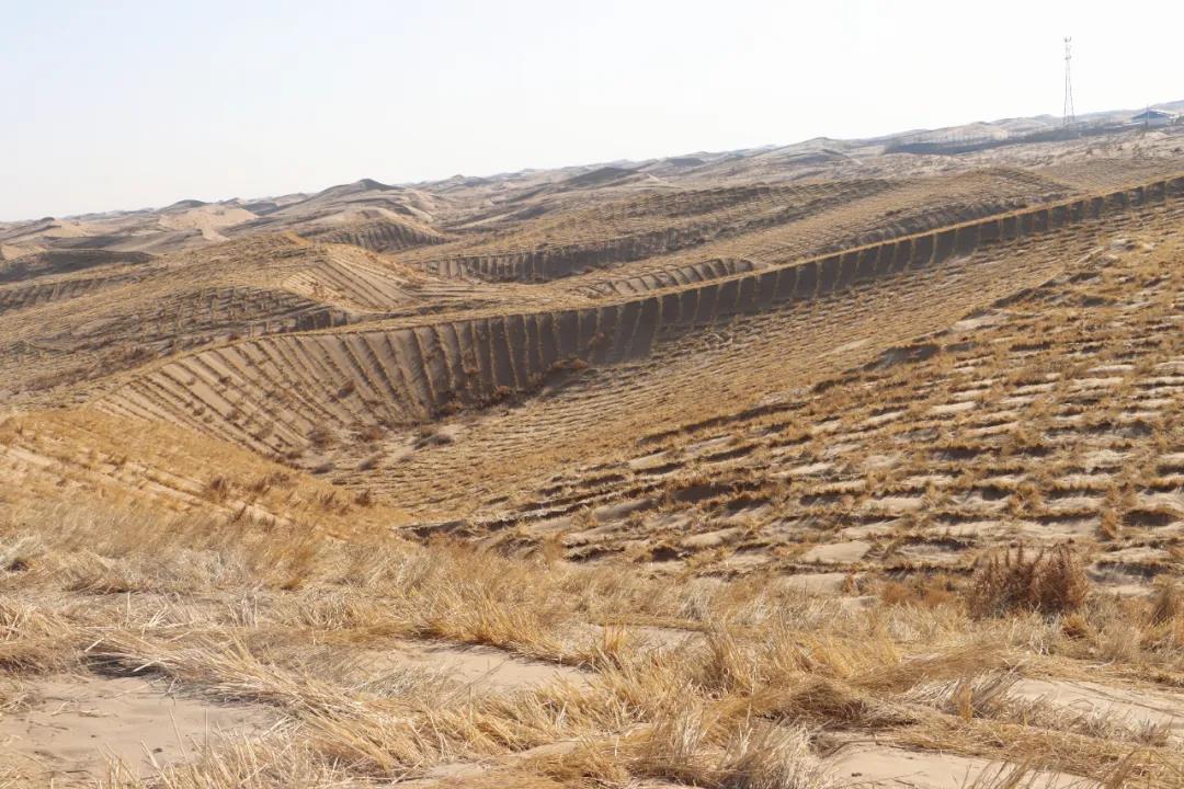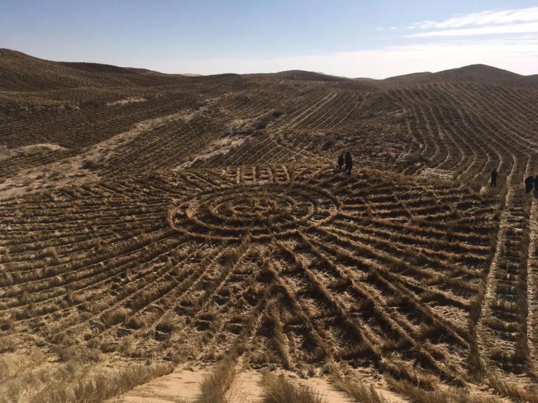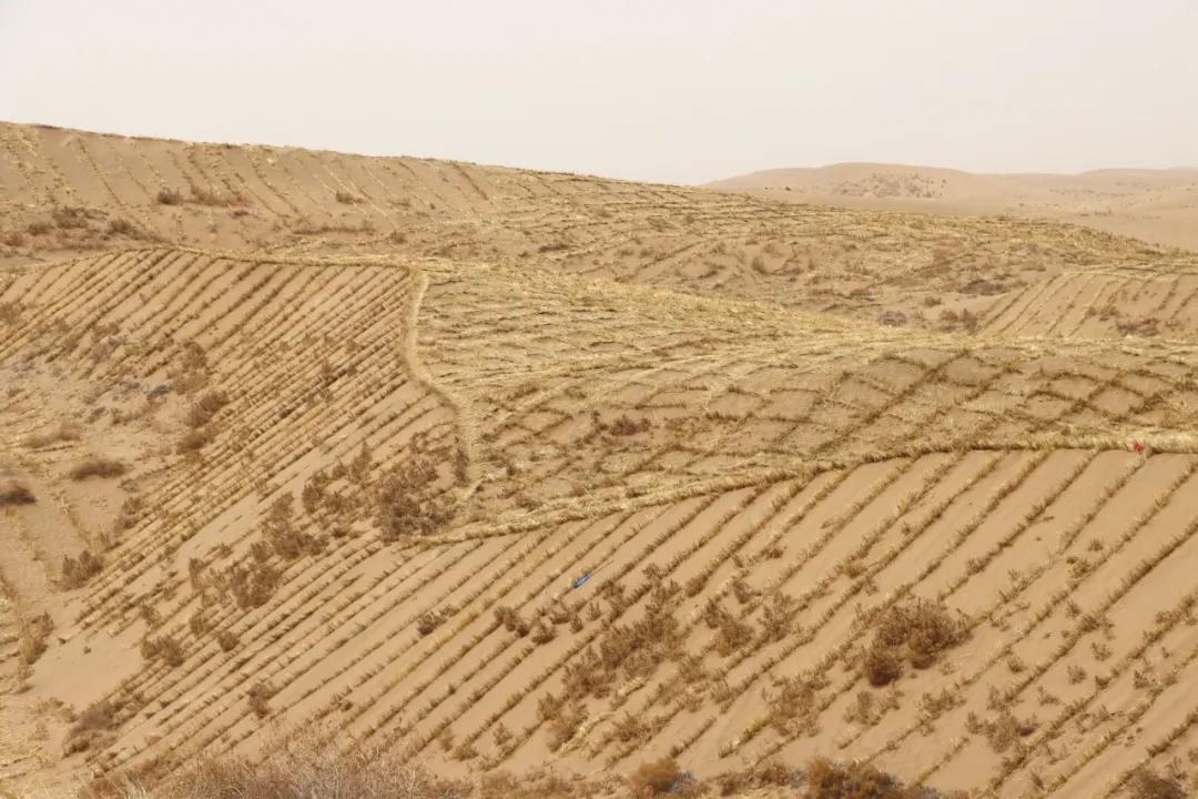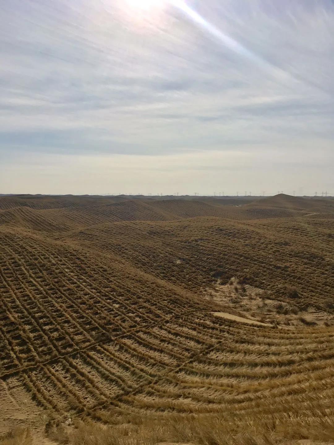 經(jīng)過(guò)了一整天的辛苦勞作,可謂戰(zhàn)果滿滿, 整齊劃一的“草方格”, 從大家的腳底下延伸至遠(yuǎn)方,像一道道迷人的風(fēng)景。無(wú)數(shù)的“草方格”,形成了成片沙障,將在這廣袤的沙海中,與風(fēng)沙牢牢抗衡。
