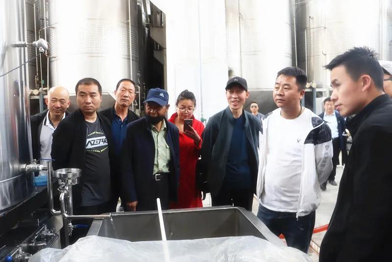 在葡萄酒壓榨車間,大家參觀了皇臺酒業(yè)先進的立式、臥式葡萄酒灌,了解了皇臺葡萄產(chǎn)業(yè)的發(fā)展情況;在葡萄酒貯藏車間,品味了葡萄原酒。
