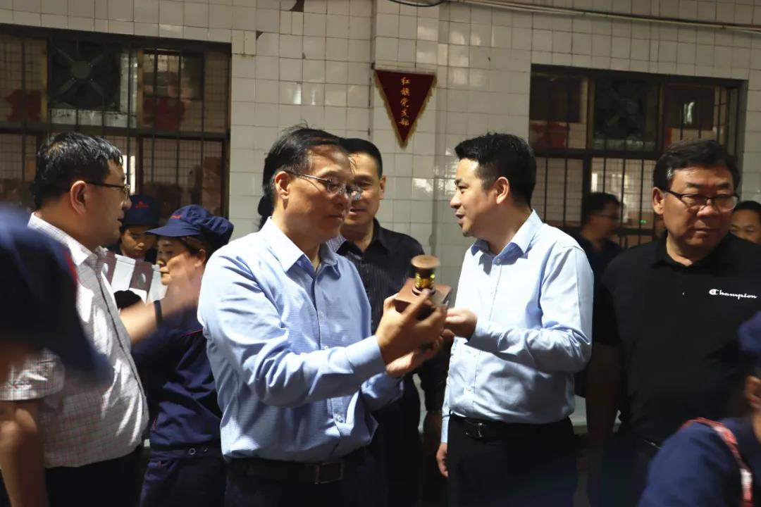 在生產(chǎn)一線調(diào)研的過程中,調(diào)研組一行品嘗了熱騰騰的原度酒。尚勛武副主席在細(xì)細(xì)品味了原度酒后說:沒想到皇臺(tái)的原度酒竟然有如此飽滿、醇香、純凈的口感,沒有絲毫的燥雜味。