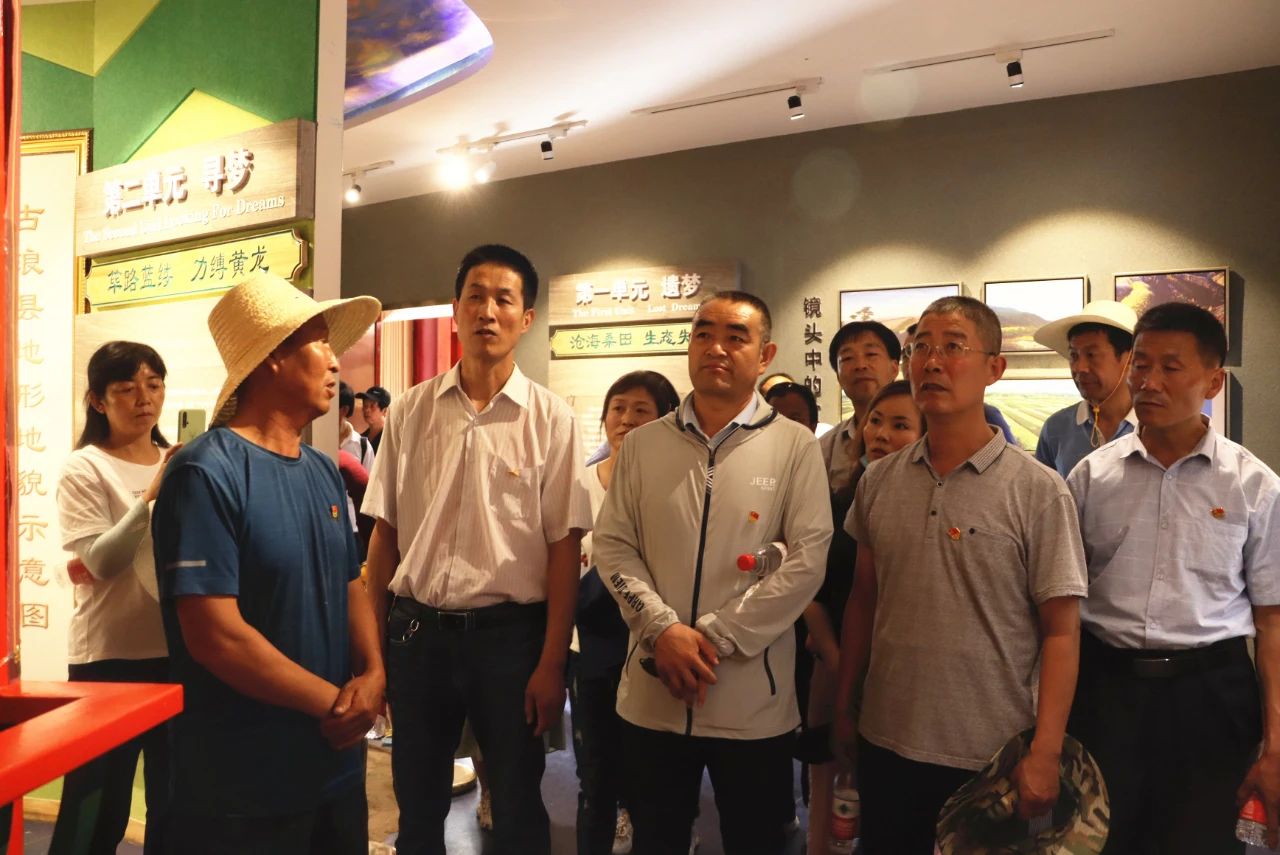 若問何花開不敗,英雄創(chuàng)業(yè)越千秋。黨員們懷著莊嚴(yán)肅穆的心情,在“八步沙老六漢治沙紀(jì)念館”中,沿著“遺夢(mèng)、尋夢(mèng)、追夢(mèng)、筑夢(mèng)、圓夢(mèng)”的時(shí)間軸,穿越時(shí)空隧道,從凝聚著八步沙三代愚公激情與悲壯、成就與輝煌的感人事跡中,感受堅(jiān)守與奮斗的壯舉,領(lǐng)悟信念與意志的傳奇。