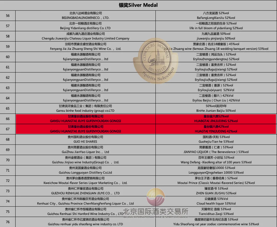 11月9日,比利時(shí)布魯塞爾上午10點(diǎn)整,第21屆比利時(shí)布魯塞爾國際烈性酒大獎(jiǎng)賽(Spirits Selection by CMB)榜單揭曉,并向全球發(fā)布獲獎(jiǎng)名單。在此次大賽中,皇臺(tái)酒業(yè)生產(chǎn)的金六鼎和銀六鼎,以優(yōu)異的品質(zhì)和獨(dú)特的包裝,在全世界54個(gè)國家和1400款樣品中脫穎而出,再次榮獲了比利時(shí)布魯塞爾國際烈性酒大獎(jiǎng)賽兩枚銀獎(jiǎng)。這是繼2019年皇臺(tái)窖底原漿12、18在第20屆比利時(shí)布魯塞爾國際烈性酒大獎(jiǎng)賽上榮奪金獎(jiǎng)、銀獎(jiǎng)后,再一次斬獲的國際大獎(jiǎng)榮譽(yù)!