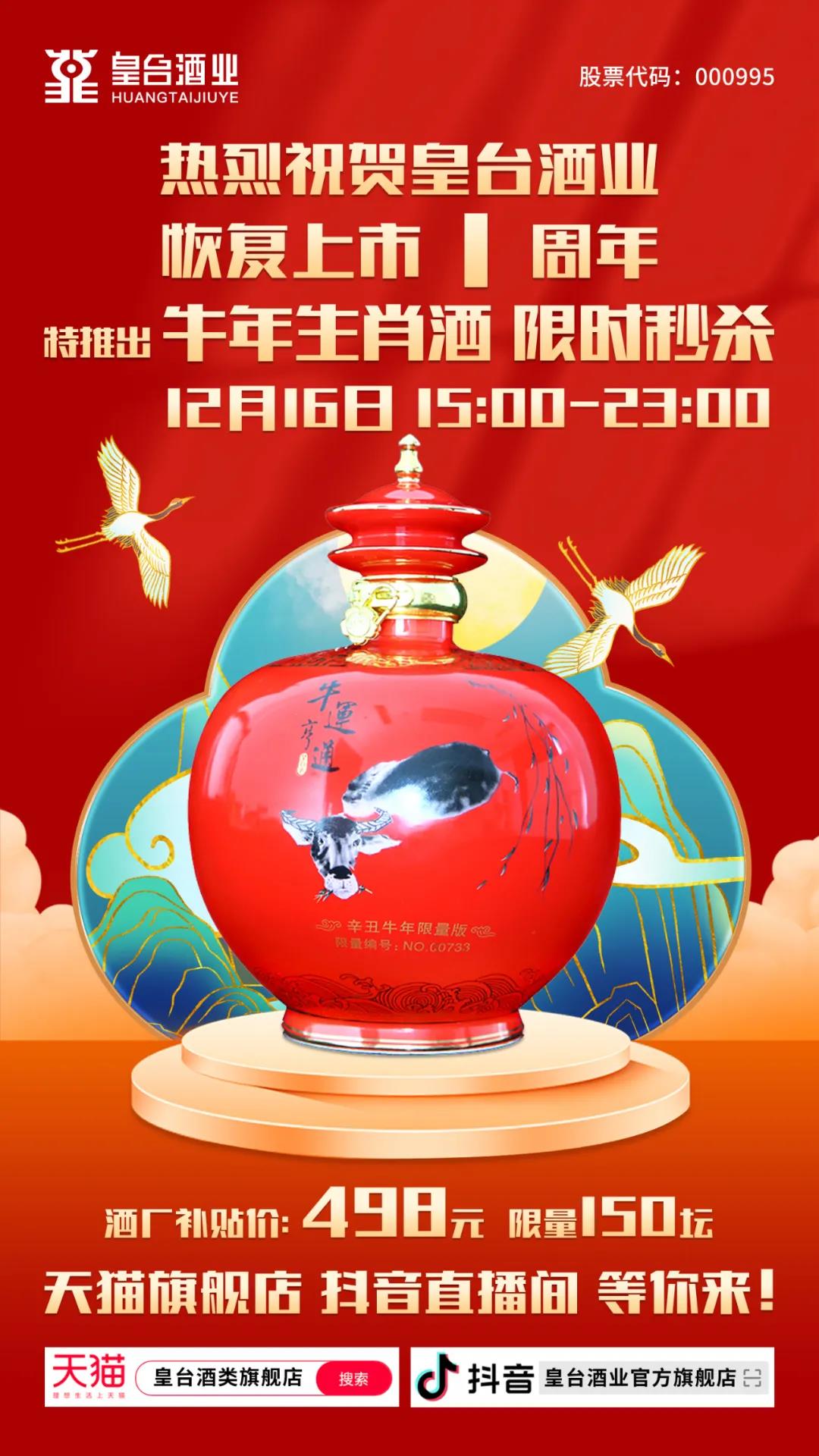 是皇臺酒業(yè)恢復上市1周年的日子!