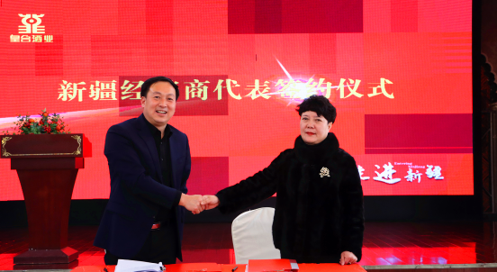 皇臺酒業(yè)總經(jīng)理代繼陳和新疆鄯善經(jīng)銷商簽約