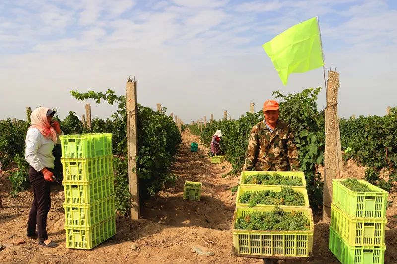 天時(shí)地利人和?;逝_(tái)酒業(yè)涼州葡萄莊園地處祁連山北麓,有著獨(dú)特的地理位置和區(qū)位優(yōu)勢(shì),充沛的日照,以及少雨蒸發(fā)量大的氣候特點(diǎn),再加葡萄種植人員的精心管理,使今年的葡萄迎來一個(gè)喜人的豐收年。