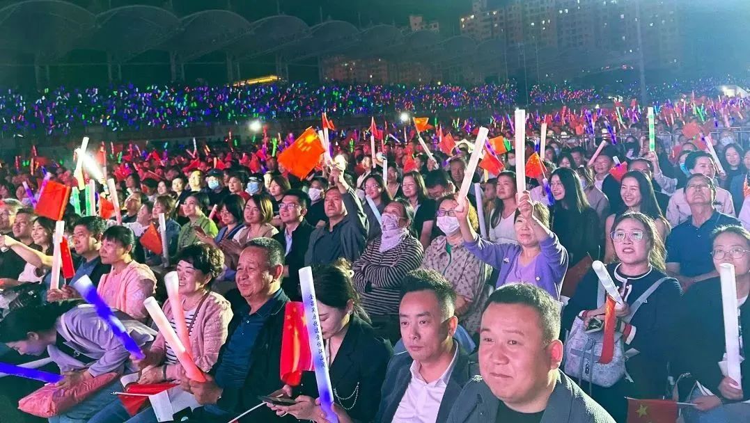 現(xiàn)場氛圍隨著音樂的節(jié)奏越來越熱烈,觀眾們揮舞著手中的熒光棒,大聲跟唱著經(jīng)典歌曲。