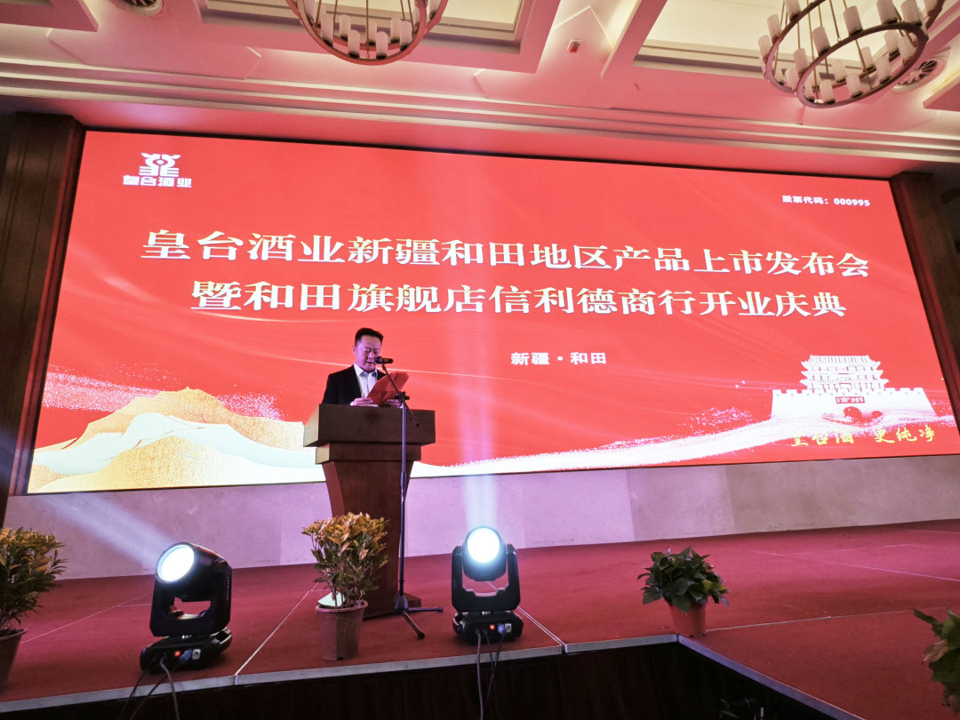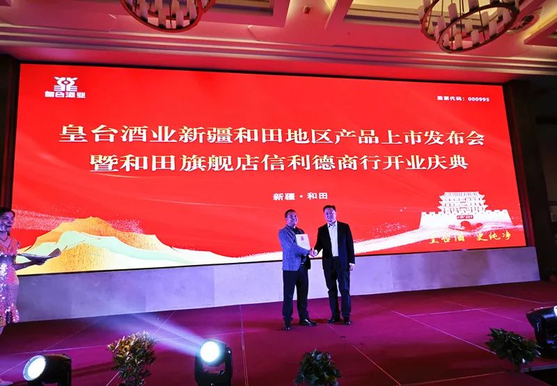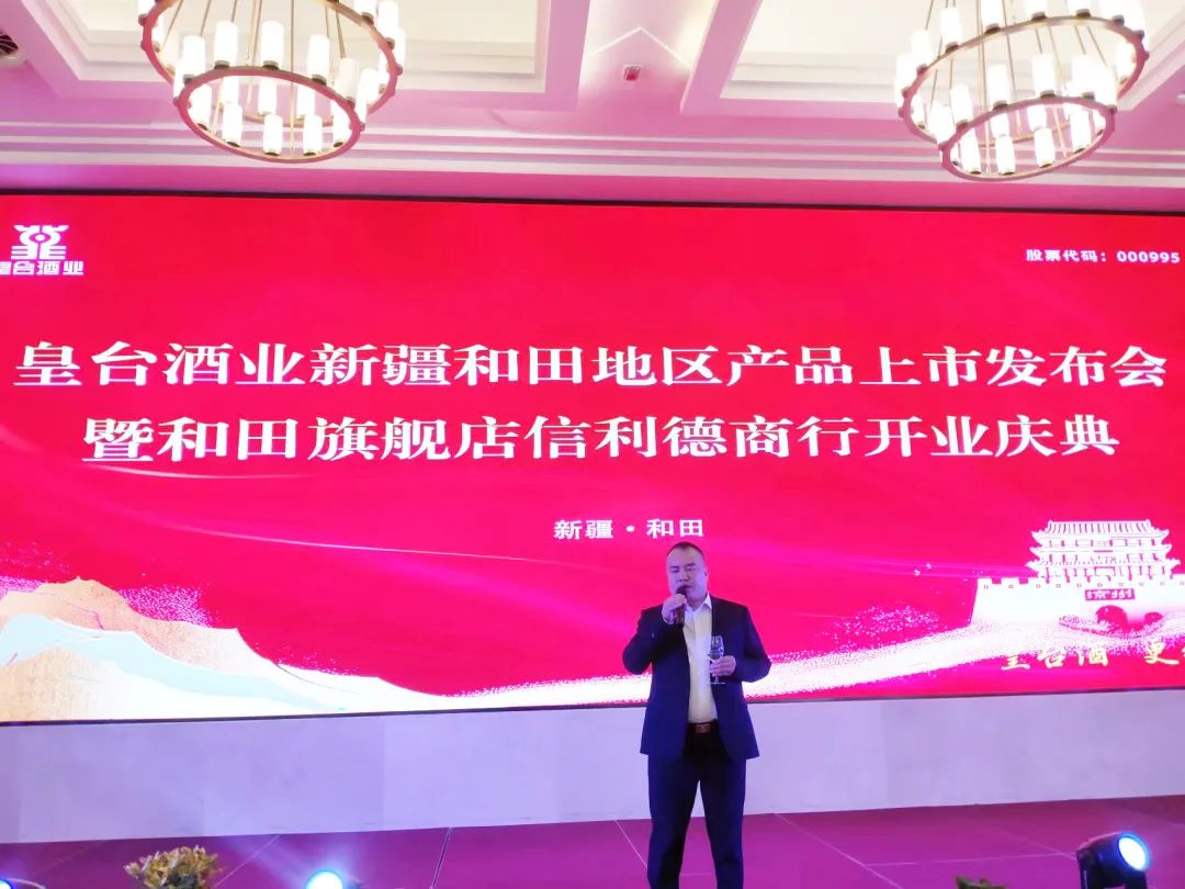 11月11日晚,皇臺(tái)酒業(yè)新疆和田地區(qū)產(chǎn)品上市發(fā)布會(huì)暨和田旗艦店信利德商行開(kāi)業(yè)慶典活動(dòng)在新疆和田迎賓館熱烈進(jìn)行。甘肅日新皇臺(tái)酒銷(xiāo)售有限公司總經(jīng)理辛秀山,副總經(jīng)理王玉強(qiáng),新疆和田地區(qū)皇臺(tái)酒總經(jīng)銷(xiāo)張文以及商界嘉賓近200人共同參與,以酒為媒,共話(huà)發(fā)展。