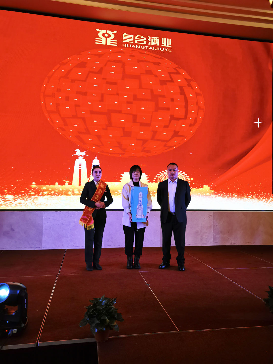 甘肅日新皇臺(tái)酒銷(xiāo)售有限公司副總經(jīng)理王玉強(qiáng)為一等獎(jiǎng)獲得者頒獎(jiǎng)