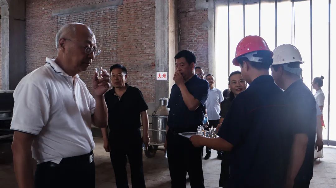 在參觀釀造車間生產(chǎn)情況的過(guò)程中,呂云懷對(duì)每個(gè)釀酒工藝都駐足查看,問(wèn)詢關(guān)于上甑、攤晾、發(fā)酵等各個(gè)細(xì)節(jié)方面的操作,并逐一品嘗了車間剛生產(chǎn)出的原度酒。他對(duì)皇臺(tái)酒業(yè)釀造車間的操作工藝給予了充分肯定,并從品質(zhì)提升方面提出了自己的寶貴看法和指導(dǎo)意見。