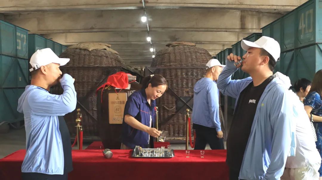 隨后進入白酒釀造車間,撲面而來的是濃郁的糧香與酒香。客戶們親眼目睹了幾千口老齡小窖的壯觀景象,了解了皇臺白酒的釀造過程。
