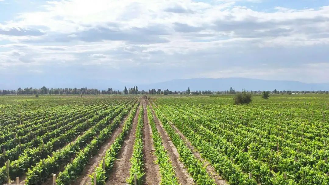 在品味葡萄酒之后,客戶們前往5000畝葡萄種植基地。一望無際的葡萄園展現(xiàn)在眼前,赤霞珠、品麗珠、黑比諾、梅鹿輒、貴人香等品種應接不暇,漫步葡園,感受著大西北的氣息與葡萄生長的勃勃生機。