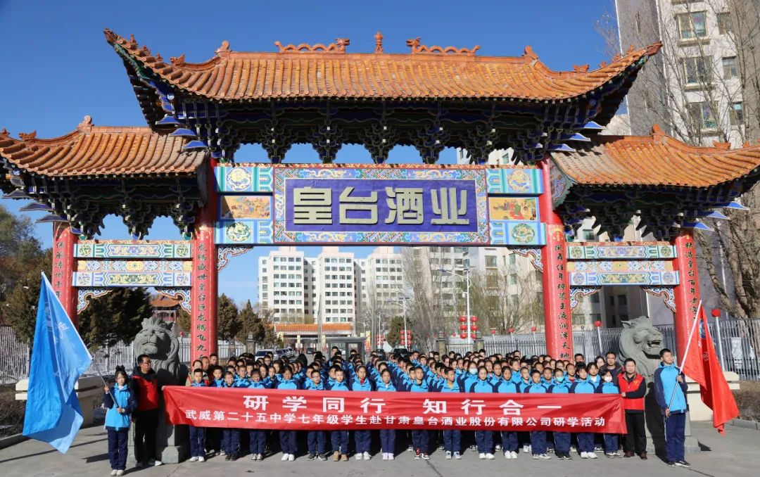 仲冬寒意深,皇臺(tái)酒香濃。11月26日,武威第二十五中學(xué)師生共計(jì)200余人,在皇臺(tái)酒業(yè)的飄香酒韻中,進(jìn)行了一場(chǎng)具有實(shí)踐意義的研學(xué)活動(dòng)。