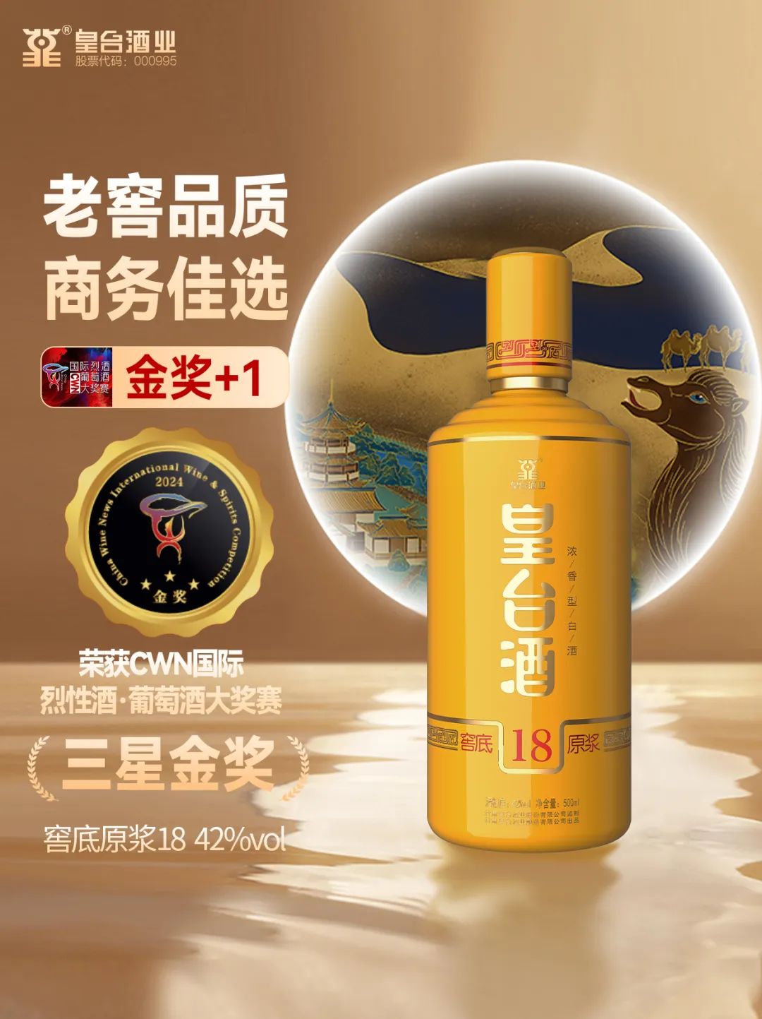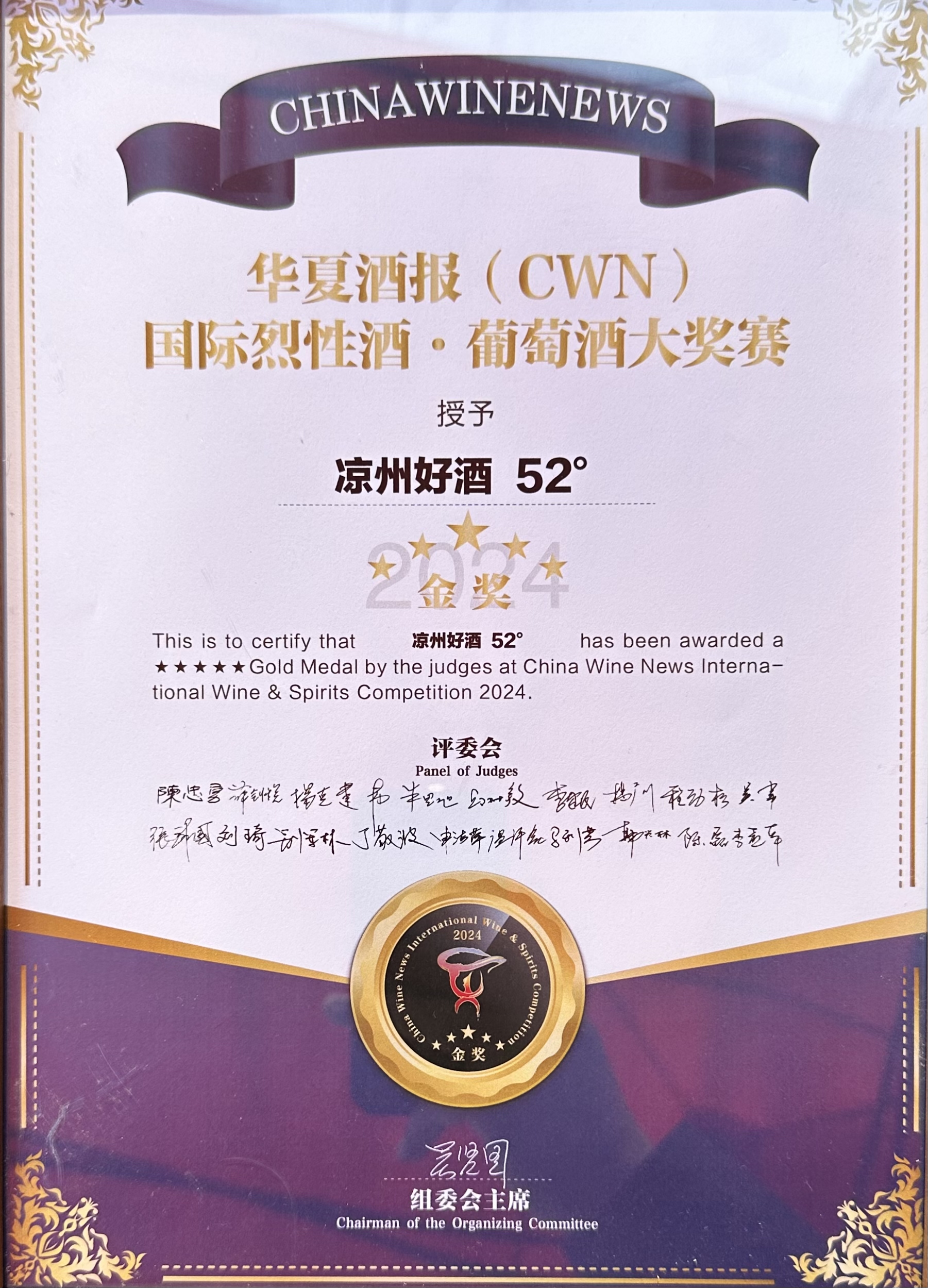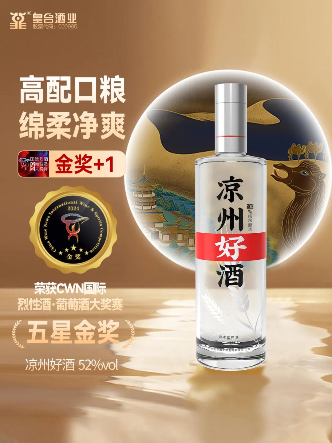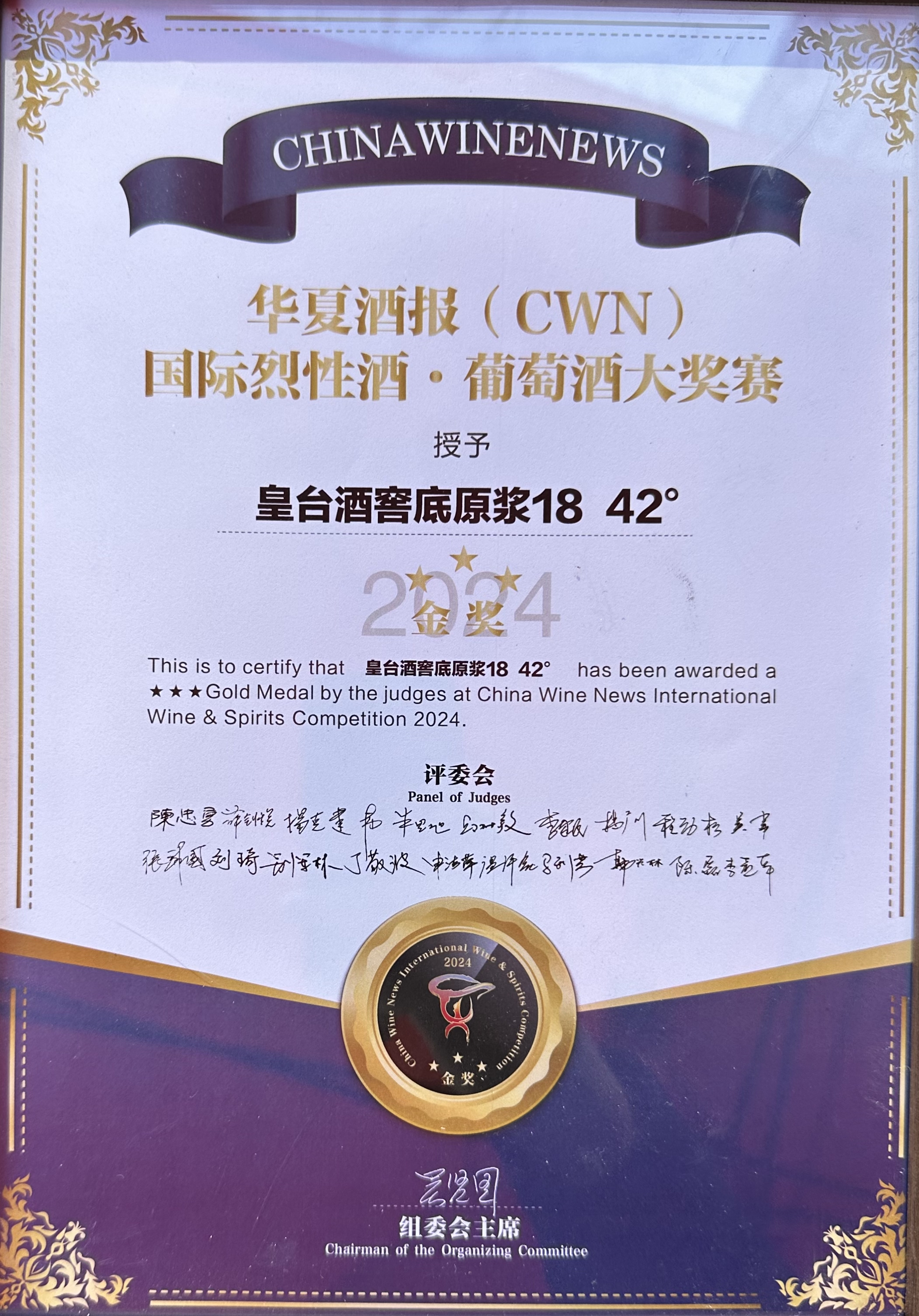 在第二屆CWN國際烈性酒·葡萄酒大獎賽頒獎盛典上,52度涼州好酒在烈性酒A類(價格在< 200元組)榮捧金獎;52度皇臺窖底原漿12和42度窖底原漿18兩款產品在B類(價格在<200-499元組)中榮捧金獎;52度皇臺窖底原漿18在C類(價格在500—799元組)中榮捧金獎。