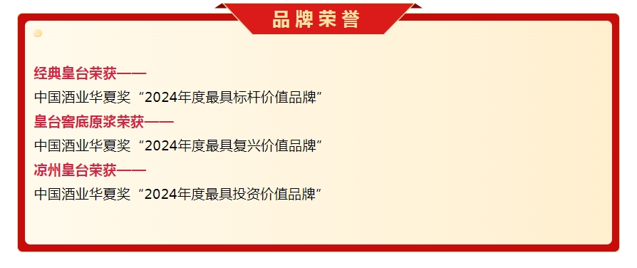 這一系列金獎和品牌榮譽的獲得,證明了皇臺酒在不同價位產品的優(yōu)秀品質,彰顯了皇臺酒的品牌影響力,以及在市場中的強勁競爭力。這些榮譽不僅是對皇臺酒業(yè)產品品質的認可,更是對公司多年來堅持傳統(tǒng)釀造工藝創(chuàng)新發(fā)展的肯定。皇臺酒業(yè)將以此為契機,繼續(xù)秉承匠心精神,為消費者帶來更多優(yōu)質酒品。