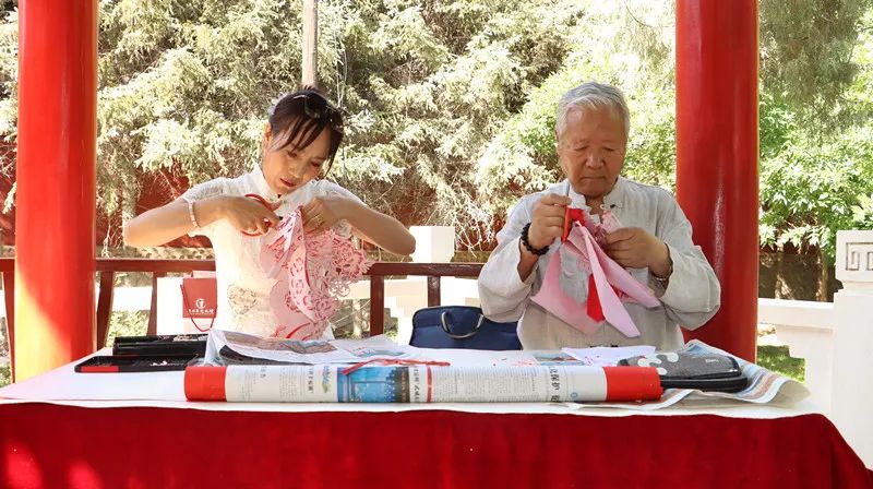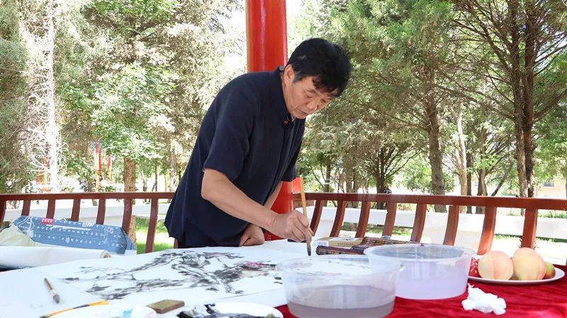 皇臺(tái)佳釀,承千年釀造之精髓,融涼州文化之底蘊(yùn),醇厚綿長(zhǎng),正如藝術(shù)家們筆下的線條柔美,芬芳馥郁。筆墨凝香玉,醉意蘸瓊漿。創(chuàng)作現(xiàn)場(chǎng),大家執(zhí)筆蘸墨,心隨酒意,在宣紙上揮灑自如:蘭草氣韻靈動(dòng),牡丹雍容華貴,青竹氣節(jié)挺拔,駿馬馳騁奔騰,剪紙喜慶韻致……藝術(shù)家們各展所長(zhǎng),筆鋒流轉(zhuǎn)間,墨香與瓊漿交融,繪就一幅幅意境深遠(yuǎn)的佳作。