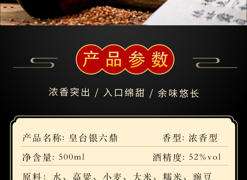 品名:皇臺(tái)酒42度銀六鼎濃香型純糧食高度白酒送禮自飲婚慶禮盒裝