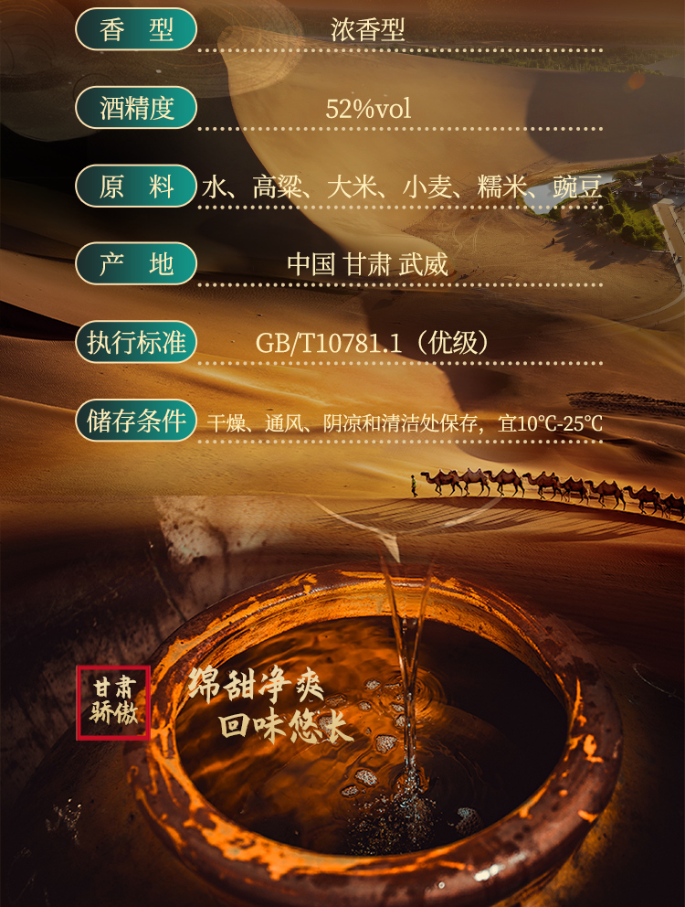 酒精度:52%vol原料:水、高粱、大米、小麥、糯米、豌豆