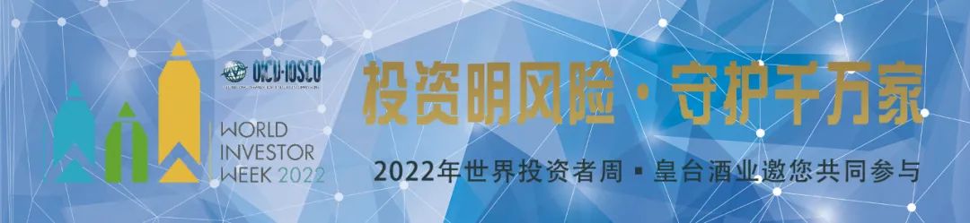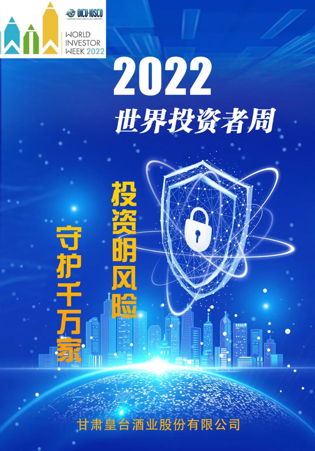 2022年10月8日-14日為“2022年世界投資者周”,本次活動(dòng)主題為“投資明風(fēng)險(xiǎn),守護(hù)千萬(wàn)家”。為貫徹落實(shí)監(jiān)管部門投資者保護(hù)工作的部署要求,加強(qiáng)投資者教育保護(hù)的國(guó)際交流合作,積極響應(yīng)“2022年世界投資者周”活動(dòng)號(hào)召,皇臺(tái)酒業(yè)在監(jiān)管部門的指導(dǎo)下,將以“投資明風(fēng)險(xiǎn),守護(hù)千萬(wàn)家”為主題,開展投資者教育和保護(hù)宣傳,面向投資者做好證券基金期貨知識(shí)宣傳普及,引導(dǎo)投資者學(xué)習(xí)金融知識(shí),樹立正確投資理念!