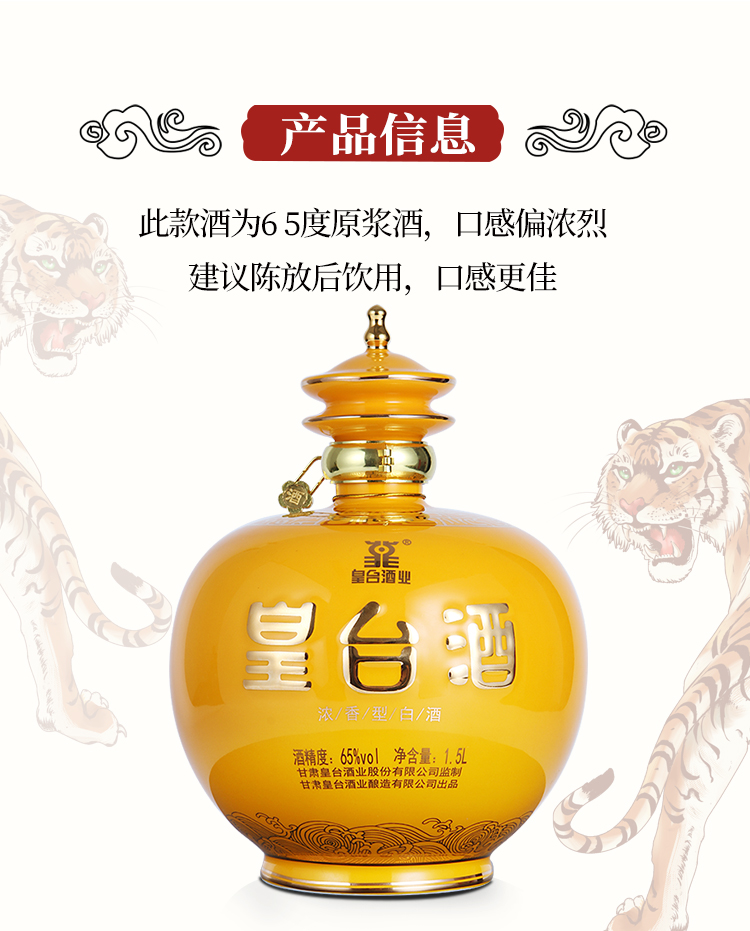 品名:皇臺(tái)65度虎兔生肖紀(jì)念1.5L壇裝酒