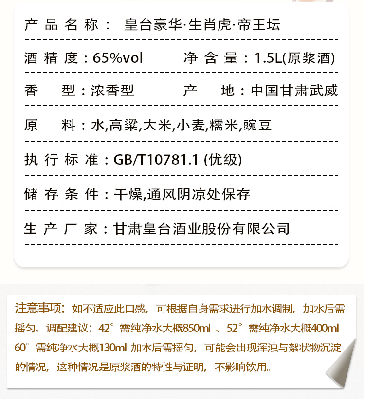 生產(chǎn)廠家:甘肅皇臺(tái)酒業(yè)股份有限公司監(jiān)制